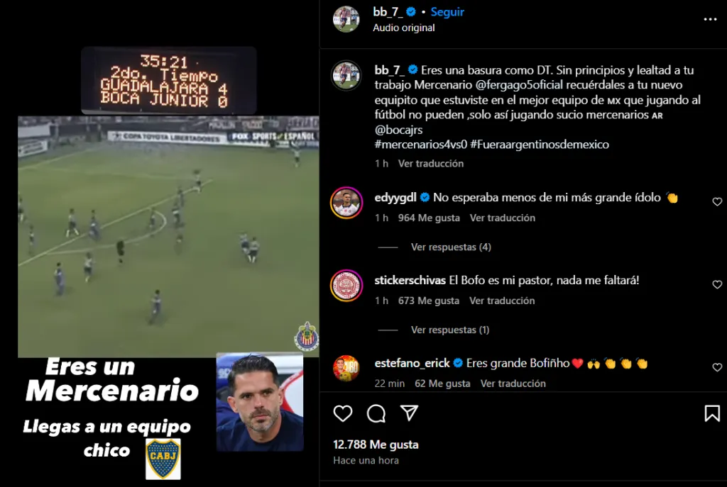 El ex delantero de 45 años de edad y quien supo ser verdugo de Boca allá por la Copa Libertadores de América del año 2005, utilizó sus redes sociales para descargar toda su artillería contra el entrenador, tratándolo de “mercenario” y al Xeneize de “equipo chico”.