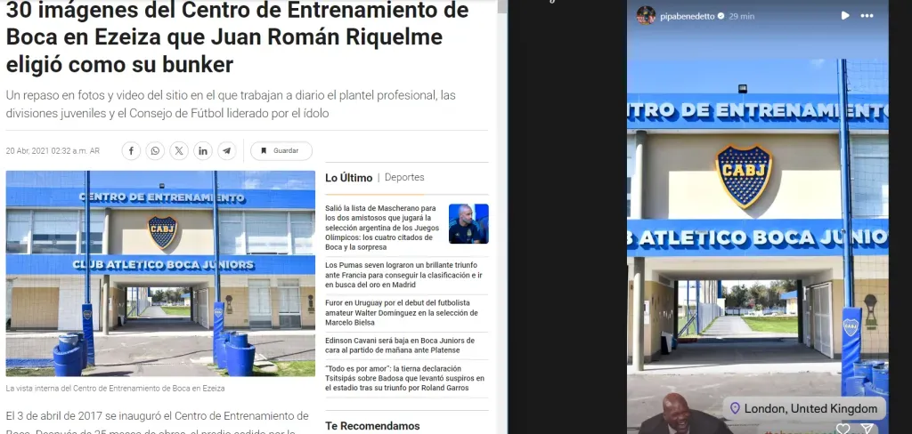 En este caso, el Pipa publicó una historia en su cuenta de Instagram para chicanear a quienes hablaron de este rumor. La misma, es una foto en el Boca Predio, donde entrena el plantel superior, y allí le puso de irónica la ubicación de Londres, junto a un gif de una persona riéndose.