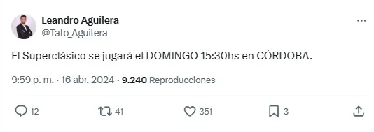 El Boca vs River por cuartos de final de la Copa de la Liga Profesional 2024 se jugará el próximo domingo 21 de abril a partir de las 15:30 horas en el Estadio Mario Alberto Kempes ubicado en Córdoba, según informó el periodista Tato Aguilera de TyC Sports.