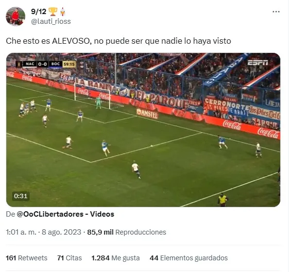Cuando las miradas deberían estar puestas en el juego de vuelta que se llevará a cabo este miércoles en el Alberto J. Armando, curiosamente en redes sociales le prestaron mucha más atención a una jugada particular que tuvo lugar en el reciente enfrentamiento entre Boca y Nacional.