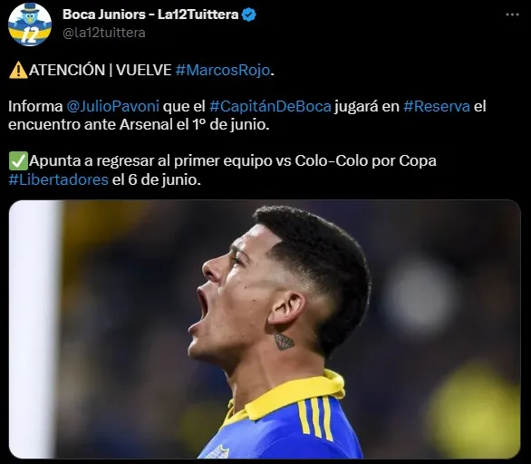 Según pudo confirmar Julio Pavoni en este día lunes, Marcos Rojo y todo Boca ya conocen que el capitán volverá a tener rodaje durante el 1 de junio en la fecha 19 del torneo de reserva, jornada en donde el segundo equipo del Xeneize recibe a Arsenal.