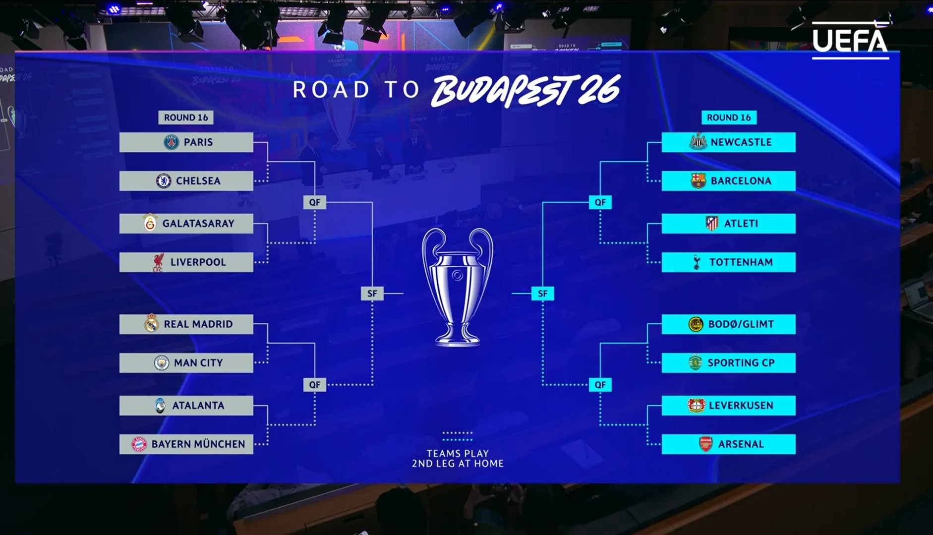 Este viernes tuvo lugar el sorteo de octavos de final de la UEFA Champions League 2025/26, con los 16 equipos que quedan con vida en la competición. Y también se conoció el camino que tendrán rumbo a la final en Budapest. En el caso del Atlético de Madrid, su primer escollo será el Tottenham Hotspur.