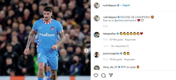 Lo cierto es que el encuentro siguió, Atlético logró mantener la ventaja y se metió nuevamente entre los 8 mejores equipos del certamen. Y De Paul lo celebró en sus redes sociales.