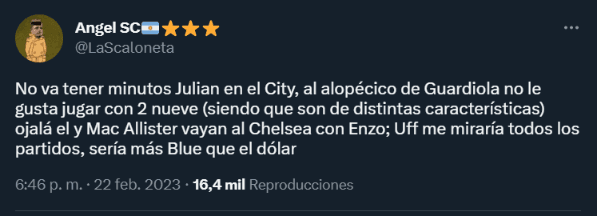 Por ende, en las redes sociales cargaron las tintas fuertemente con el entrenador español. Fundamentalmente, gran parte de los usuarios de Twitter se enojó con el estratega de Manchester City por no colocar a Julián Álvarez. Sí, una vez más, el campeón del mundo con la Selección Argentina vio el juego desde el banco de los suplentes.