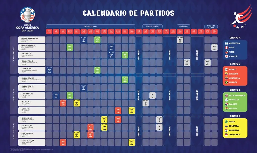 ¿Cuál es el calendario completo de la Copa América 2024?