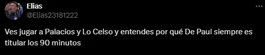 “Lo Celso es un estorbo, basta“, disparó uno de los usuarios, mientras que otro analizó: “Entendés por qué De Paul siempre es titular“. Además, resaltaron la acción en la que el rosarino le hizo falta a Gallese, lo que invalidó un gol para Nicolás Tagliafico.