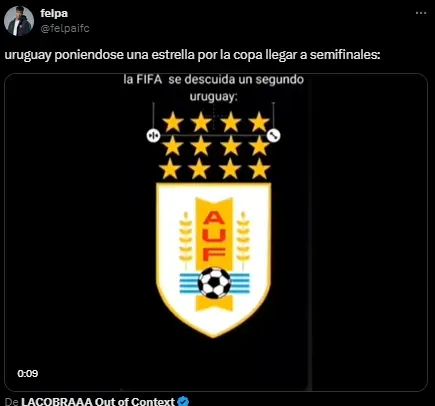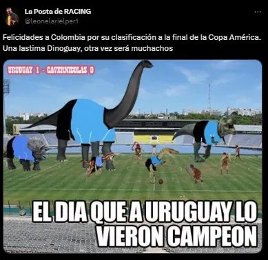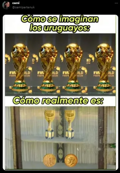 Sin embargo, el palo le negó el último gran grito al Pistolero y la Celeste se despidió de la posibilidad de sumar su 16° trofeo en el evento. En redes sociales, los memes afloraron con el pitazo que sentenció la historia y muchos de ellos fueron apuntados a Bielsa.