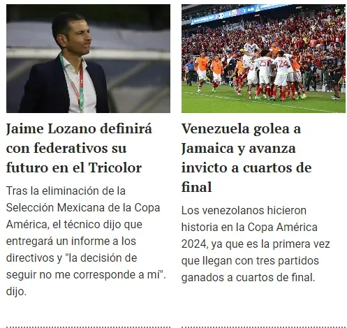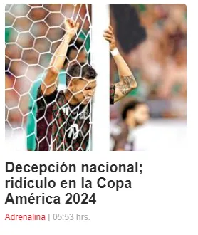Excélsior, otro portal mexicano, fue de los menos sutiles debido a que directamente criticó al seleccionado por la eliminación: “Decepción nacional; ridículo en la Copa América 2024“. Además, en la bajada señalaron la profunda crisis de la Tri en los últimos años: “La crisis del equipo mexicano es inmensa y se volvió a quedar en fase de grupos de un torneo importante“.