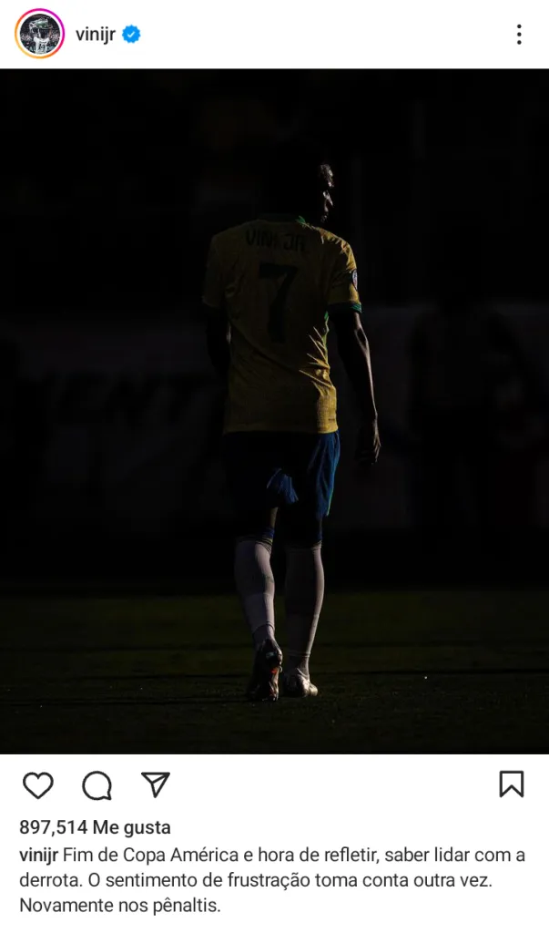 “Recibí dos tarjetas amarillas evitables. Volví a ver una eliminación desde afuera. Pero esta vez fue mi culpa y pido disculpas por eso. Sé escuchar las críticas y, créanme, las más duras vienen de casa”, expresó Vinicius Jr. como autocrítica a su aporte en el torneo.