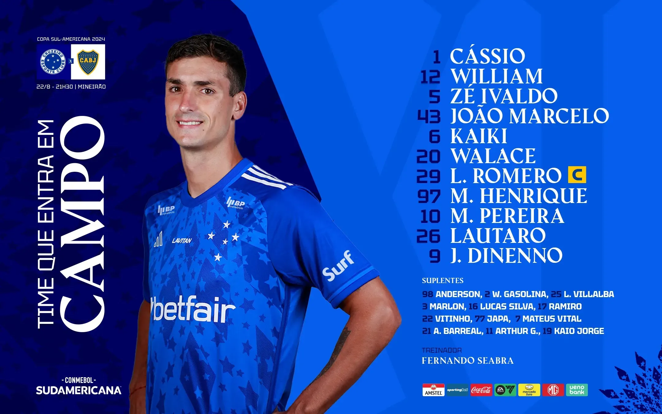 CRUZEIRO: Cássio; William, Zé Ivaldo, João Marcelo, Marlon; Matheus Henrique, Walace, Matheus Pereira; Lautaro Díaz, Juan Ignacio Dinenno, Álvaro Barreal.