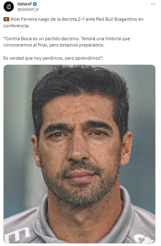 “Es un partido decisivo en nuestra casa (contra Boca), que seguramente tendrá una historia que sólo conoceremos al final. Hoy perdimos, pero aprendimos”, concluyó el mandamás del Palmeiras sobre el duelo del jueves y el motivo por el cual decidió preservar a la mayoría de sus titulares.