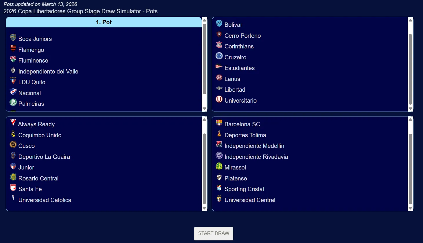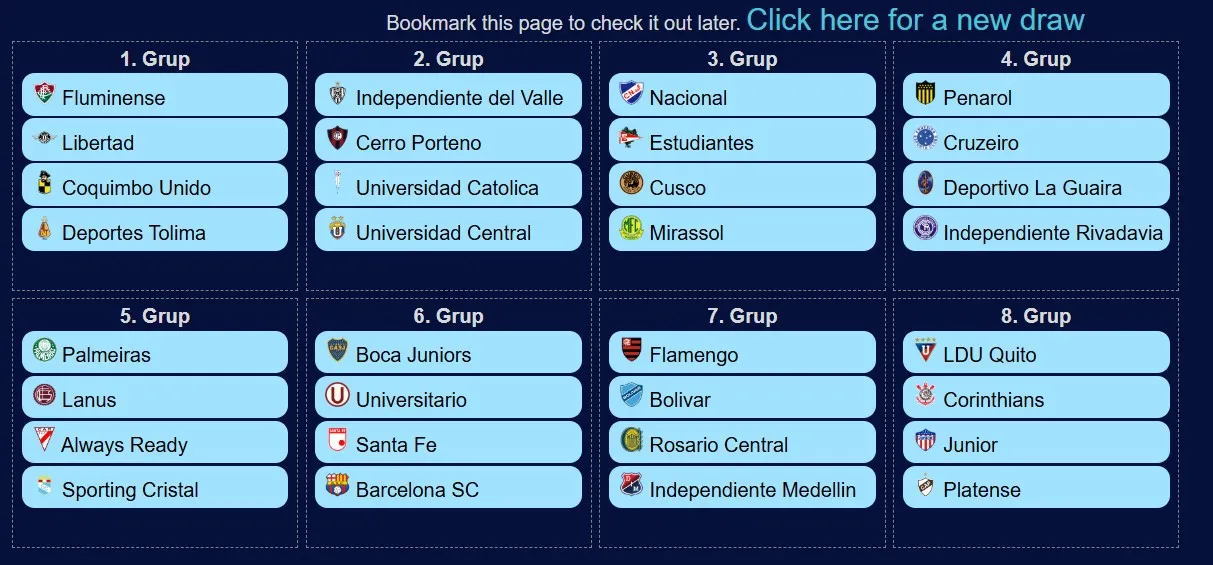 Todos y cada uno de los 32 equipos clasificados para esta edición del torneo más importante del continente a nivel de equipos aguardan para conocer su suerte. Y, para sobrellevar la ansiedad, existe la posibilidad de simular el sorteo de la propia fase de grupos de la Copa Libertadores. Una gran oportunidad, también, para entender el desarrollo del mismo.