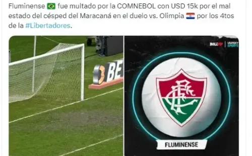 ¿Qué fue lo que pasó? Sencillamente, a Fluminense le cayó una sanción de 15 mil dólares debido a que se comprobó el mal estado del campo de juego del Estadio Jornalista Mario Filho en lo que fue el duelo de cuartos de final de esta Libertadores, donde los de Fernando Diniz eliminaron a Olimpia de Paraguay luego de vencerlos por 2 a 0 en el Maracaná y 3 a 1 de visitantes en Asunción.