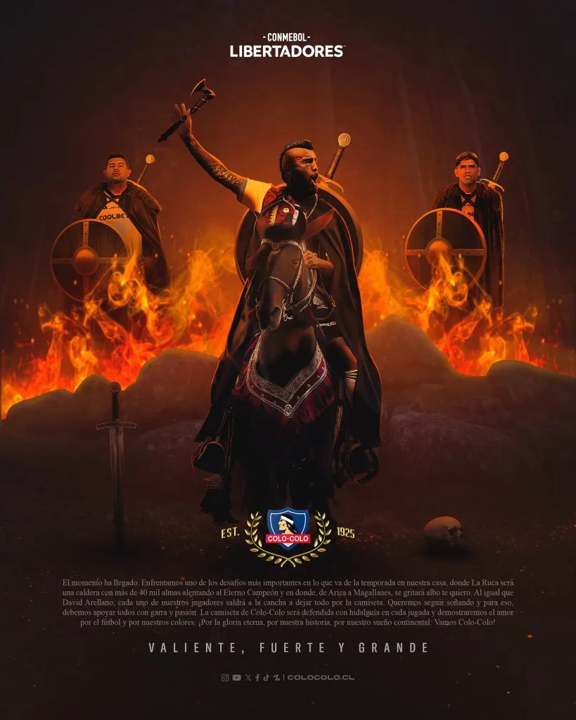 “Por la gloria eterna, por nuestra historia, por nuestro sueño continental: ¡Vamos Colo Colo! Valiente, fuerte y Grande”, finaliza la arenga que desde el club compartieron con sus hinchas en busca de la unidad para sacar adelante un partido que será clave en el desarrollo de una serie que se decidirá en el Estadio Monumental, con River haciendo de local, el próximo martes 24 de septiembre.