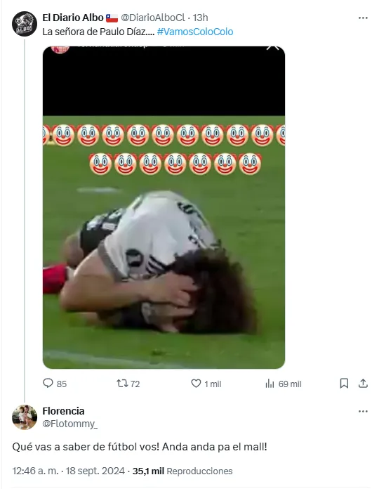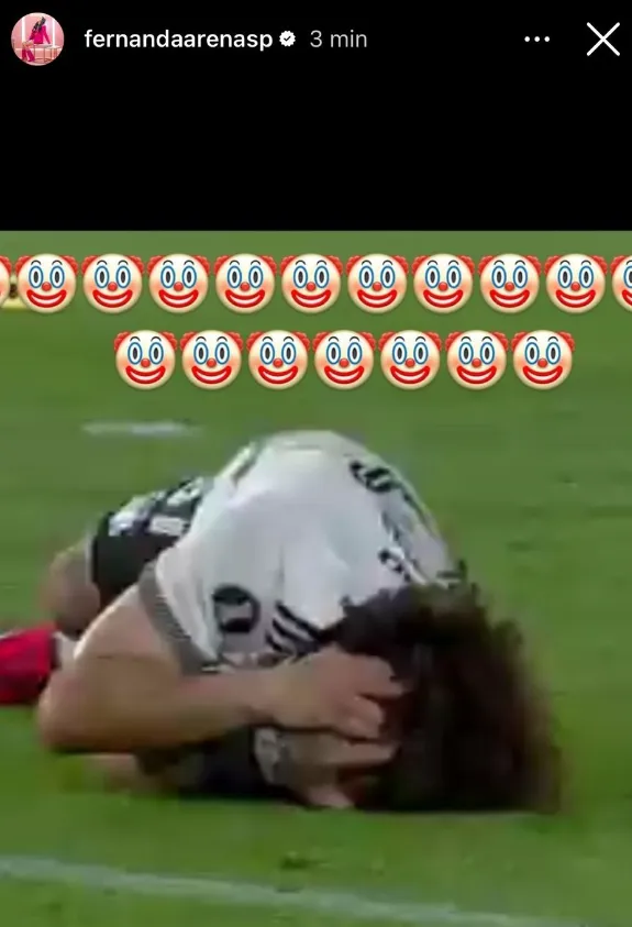 La primera piedra la arrojó Fernanda Arenas en su cuenta de Instagram, burlándose de Falcón a través de una story plagada de emojis de payasos por delante de una imagen del defensor del Cacique en el suelo.