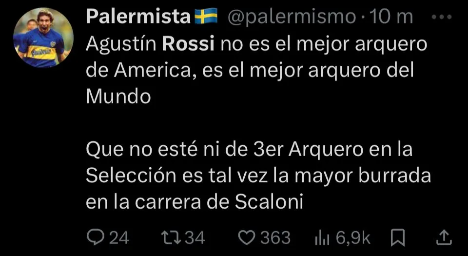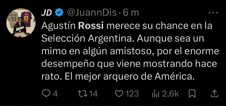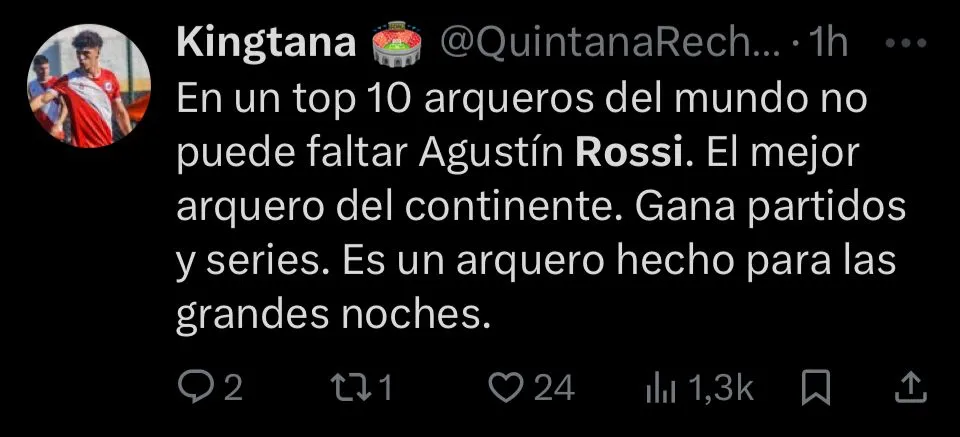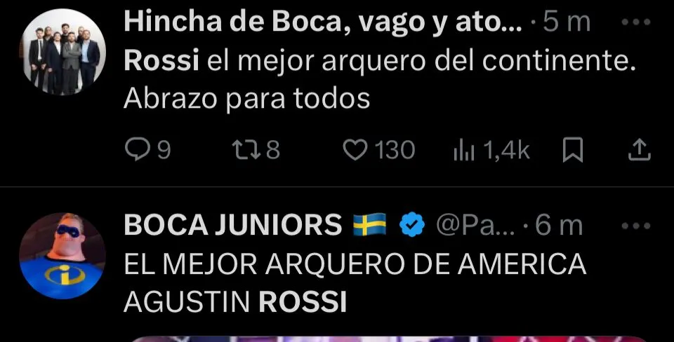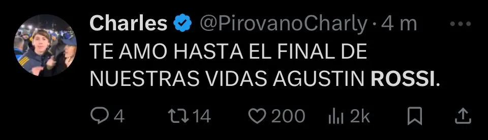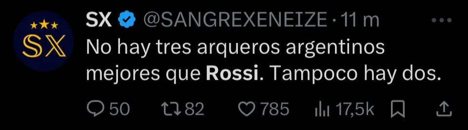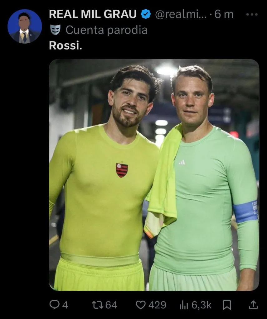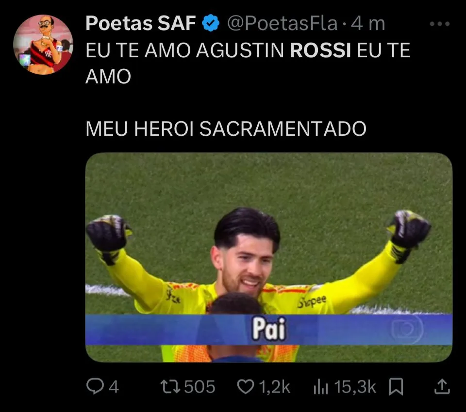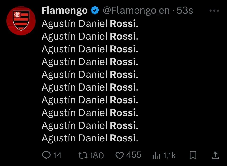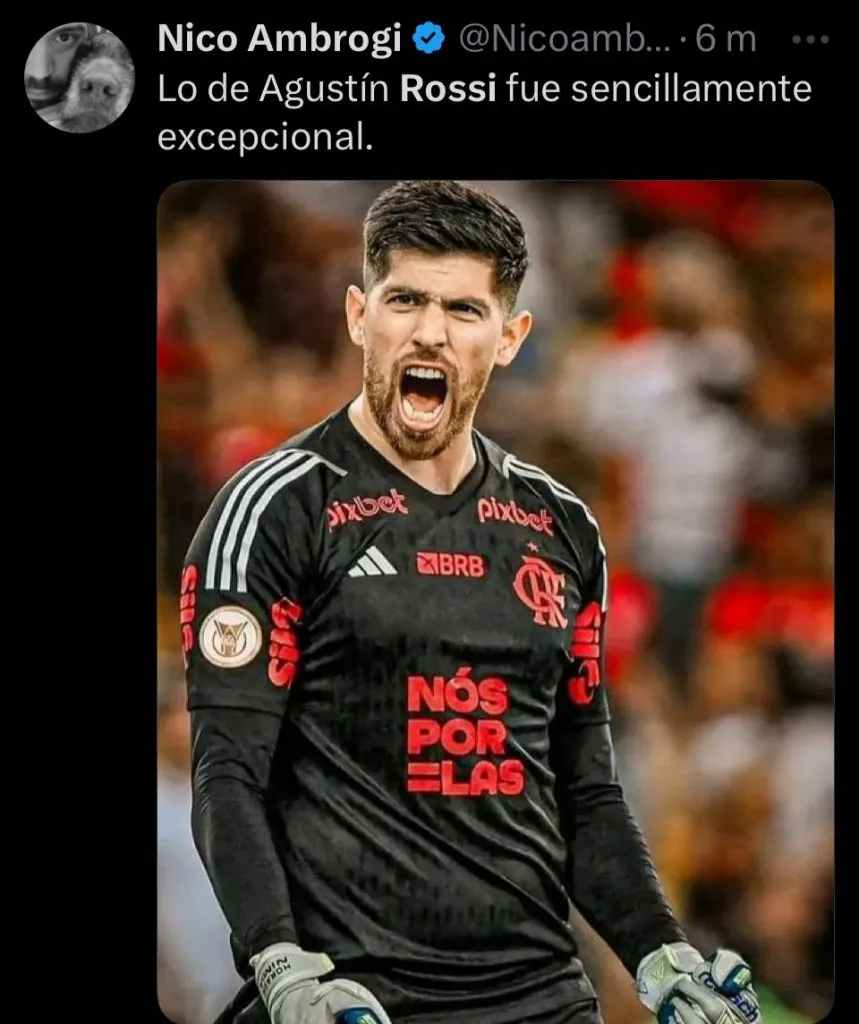 Además la nostalgia, también se dieron mensajes de reconocimiento para que Rossi se convierta en tendencia en redes sociales. Incluso, hubo quienes lo pidieron para la Selección Argentina. Hasta, el propio Flamengo se sumó al furor publicando un mensaje con su nombre repetido una y otra vez, dejando en claro que fue el gran responsable de que el Mengao siga soñando con volver a la cima de América.