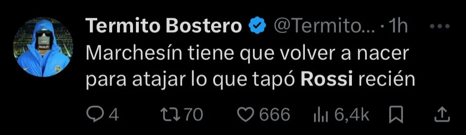 Su actuación no solo generó la ovación de los hinchas de Flamengo, sino que también despertó una ola de reacciones entre los simpatizantes de Boca, club en el que Rossi dejó un importante recuerdo. Debido a su trascendencia en la serie, muchos hinchas xeneizes recordaron su paso por la Bombonera y lamentaron su salida a principios de 2023, luego de no haber llegado a un acuerdo por su renovación.