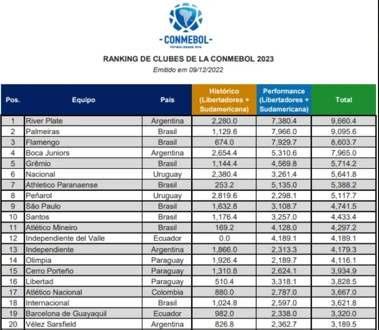 De esa manera, mejoró su promedio que hasta entonces le daba un resultado de 7965 puntos (porcentaje entre coeficiente histórico, performance de los últimos 10 años en la Libertadores y títulos nacionales en las últimas 10 temporadas). Incluso, si no llegase a clasificar a la Libertadores 2024 (debería obtener uno de los cupos de la Copa de la Liga o el que entrega la Copa Argentina) podría acceder de todas formas.
