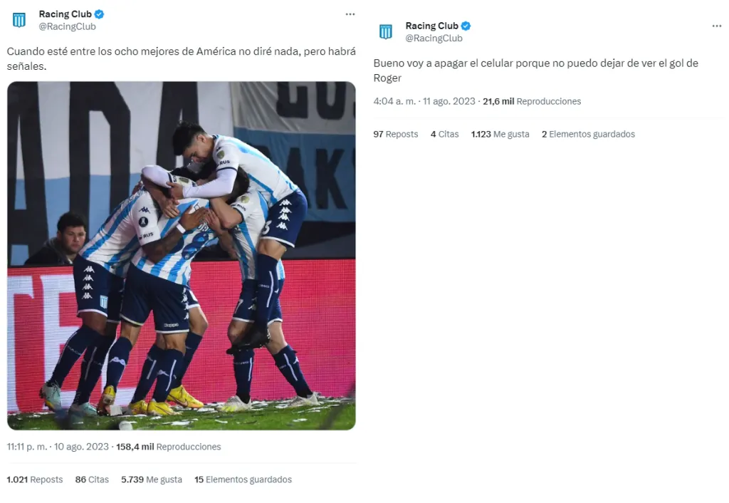 “Cuando esté entre los ocho mejores de América no diré nada, pero habrá señales”, fue lo primero que escribió la Academia (palito para Independiente, que había presentado a Mancuello con un mensaje similar). En plena madrugada, apareció otro tuit: “Bueno voy a apagar el celular porque no puedo dejar de ver el gol de Roger”.