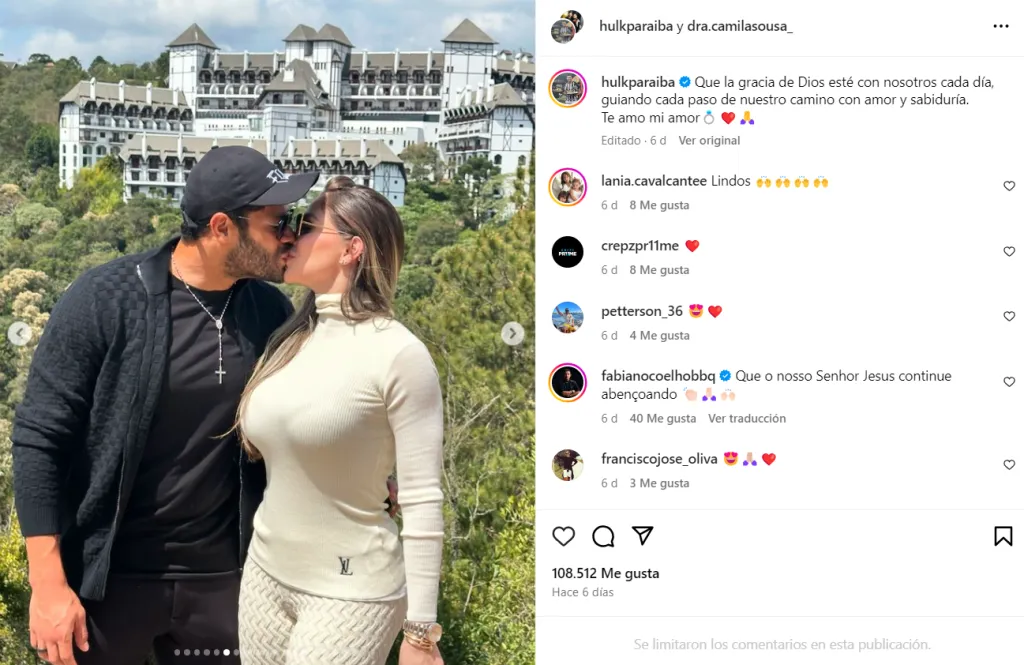 Es habitual ver posteos de Hulk en las redes sociales en honor a su esposa. Comparte fotos, dedicatorias románticas y le expresa su amor abiertamente bastante seguido en su cuenta de Instagram. Por su parte, Camila, que es médica, tiene su cuenta privada, pero en su foto de perfil está junto al goleador de Atlético Mineiro.