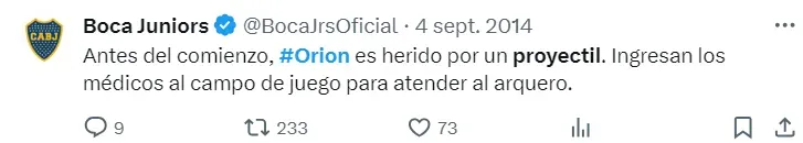 En ese momento, el árbitro Mauro Vigliano le preguntó al 1 si estaba en condiciones de seguir y, ante la respuesta positiva del hombre del Xeneize, el partido se jugó. Aquella vez, el Tribunal multó al club con 70 mil dólares y le prohibió jugar con público en su próxima cita internacional.