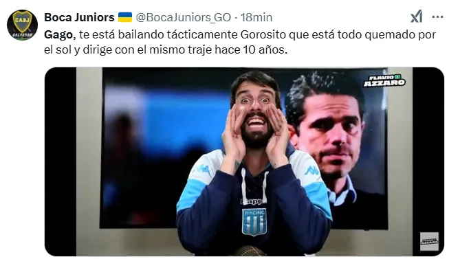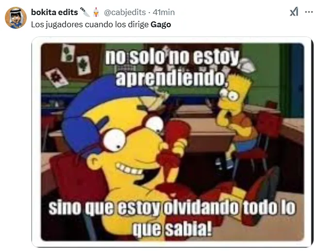 El principal apuntado en las bromas fue el entrenador Fernando Gago, quien además recibió duras críticas de los hinchas del conjunto de La Ribera.