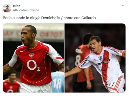 Entre los tópicos más abordados en la plataforma X (antes Twitter) figuran las caras de Deyverson -el verdugo de River en la serie-, Miguel Borja, el regreso del Muñeco al club, el recibimiento en el Monumental y el arbitraje de Wilmar Roldán, entre otros motivos de gracia que encontraron los usuarios en redes. A continuación, un compilado de los memes que recorrieron la virtualidad.