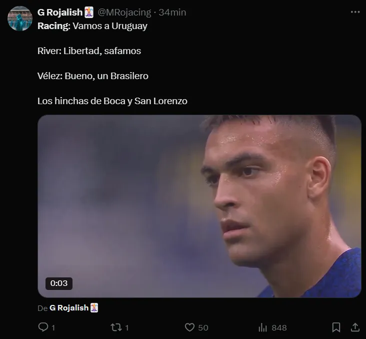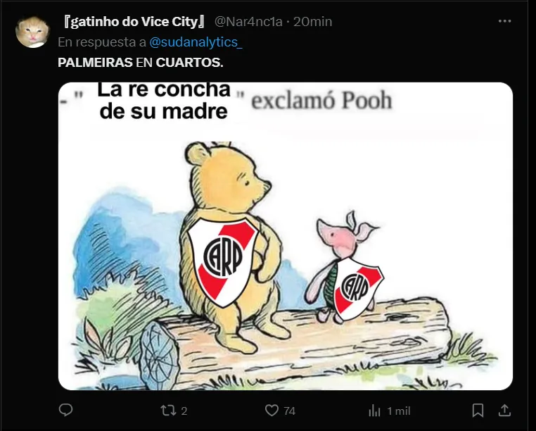 Hubo muchas bromas enfocadas en River, cuyo posible rival de cuartos de final podría ser Palmeiras, que antes debe enfrentarse con Universitario de Perú. Además, otras se relacionaron con la ausencia de equipos como Boca y San Lorenzo, mientras que algunas tenían que ver con el rival de Racing, que será Peñarol de Uruguay.