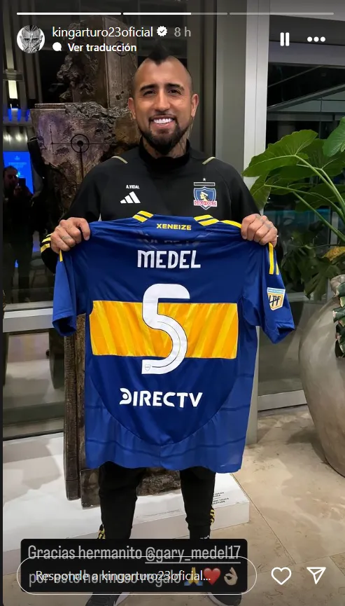 Fiel a su estilo provocador, Arturo Vidal utilizó sus redes sociales para mostrar un regalo que recibió en su llegada a Buenos Aires con Colo Colo para afrontar el partido de vuelta de los cuartos de la Libertadores. El obsequio fue de parte de su ex compañero Gary Medel y el mismo era una camiseta de Boca, con la cual posó orgulloso para luego subir una historia en Instagram.