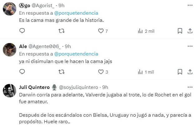 Teniendo en cuenta el mal partido que hizo la Celeste en líneas generales, son muchos los simpatizantes que acusan al plantel de haber “ido para atrás” para “hacerle la cama” a Marcelo Bielsa, luego de lo que fue el escándalo con Marcelo Bielsa y Luis Suárez.