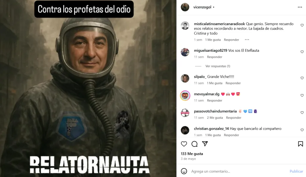 Es que Javier Vicente se hizo viral, inclusive mucho antes que este término sea tan popular. El Sordo -como lo apodan sus allegados- no pasó inadvertido, tanto por su calidad de relato, con características muy propias como una velocidad digna de ser un bicho de radio -como él mismo se denomina- pero también por no tener reparos a la hora de manifestarse políticamente en aquellas transmisiones de Fútbol Para Todos.