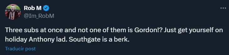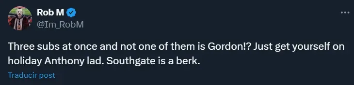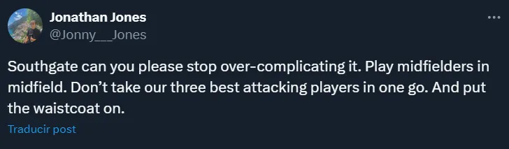 Esto generó que, por intermedio de las redes sociales, los hinchas británicos se despachen con comentarios plagados de sorpresa. No necesariamente criticando la decisión de Southgate sino más bien mostrándose anonadados por este “atrevimiento” del estratega.