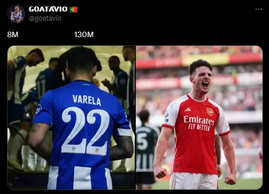 Incluso, la comparativa con Rice llegó desde el lado de lo que costaron ambos pases, ya que Porto pagó 8 millones de euros por su pase y Arsenal 130 millones de euros por el del inglés procedente del West Ham. Además, realizaron memes en donde afirmaban que el mediocampo entero de los Gunners estaba “en el bolsillo” del ex Boca.
