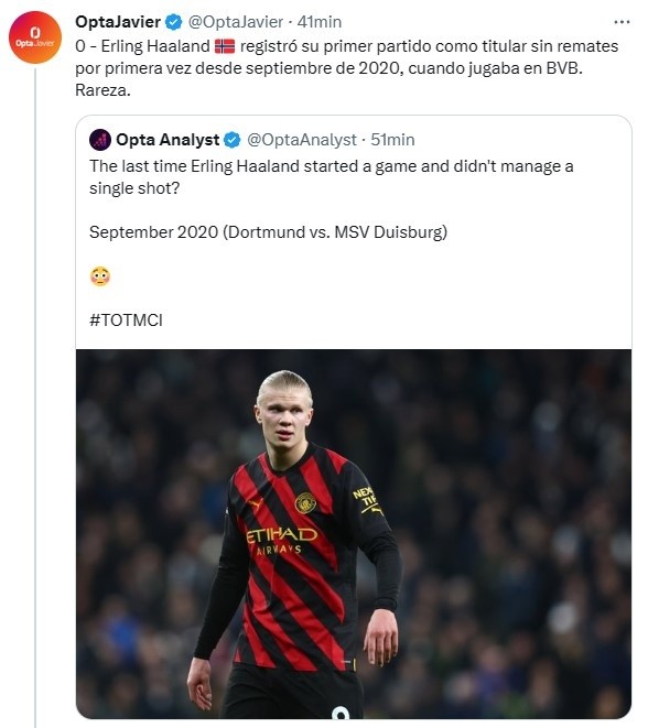 El delantero estelar del City hoy no solo no pudo rematar al arco para generar peligro, sino que tampoco probó ningún estilo de disparo por más desviado que sea. La presión, la dificultad en el giro y la desconexión con sus compañeros dieron como resultado una nula participación de Haaland en la cancha del Tottenham.