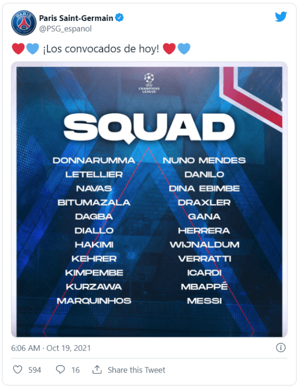 El París Saint-Germain oficializó la nómina de convocados para el duelo ante Leipzig por la Champions League e Icardi está adentro. El ex-Inter está disponible para el compromiso que tendrá lugar en el Parque de los Príncipes, al igual que otras figuras como Lionel Messi y Kylian Mbappé.