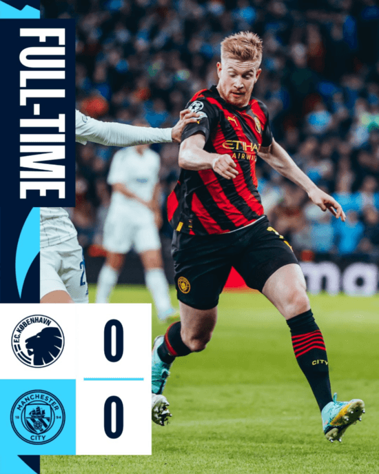 La jornada de hoy estuvo lejos de ser la ideal para el Manchester City. Enfrentaba a Copenhague, a quien venía de hacerle cinco goles hace una semana, pero no pudo llevarse más que un empate 0 a 0. Julián Álvarez fue titular y jugó los 90 minutos, pero no pudo romper la igualdad.