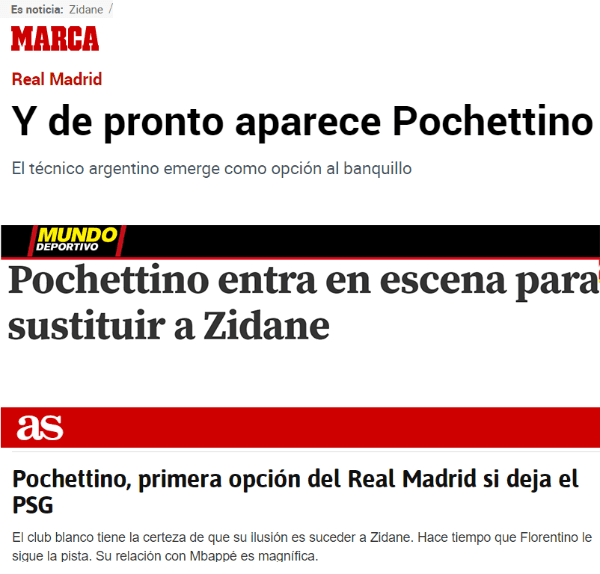 En las últimas horas, medios importantes como Marca, Mundo Deportivo y AS empezaron a posicionar a un entrenador argentino como posible sustituto de Zizou. Previamente, Massimiliano Allegri, Antonio Conte y hasta Raúl eran los personajes que aparecían como alternativas para sentarse en el banco blanco.