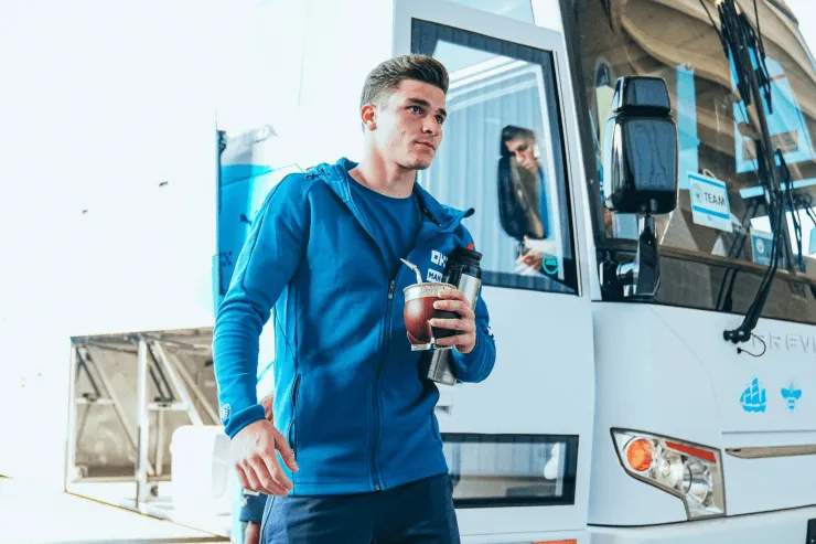 En el camino al campo de juego, Julián Álvarez salió del micro del conjunto ciudadano con mate en mano y el termo bajo el brazo. Hubo quienes notaron este detalle, pero muchos otros no y sin dudas resulta por lo menos llamativo y curioso. Como buen argentino, el Araña salió a la cancha tomandounos buenos verdes.