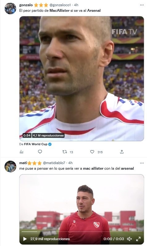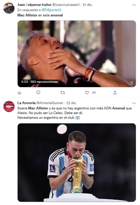 Donde sí hubo consenso es con su posible arribo al Arsenal. Fueron varios los fanáticos de la Selección que se mostraron a favor de que Mac Allister sea nuevo jugador de los Gunners y hasta lo expresaron con algunos memes en Twitter. Clarita la postura.