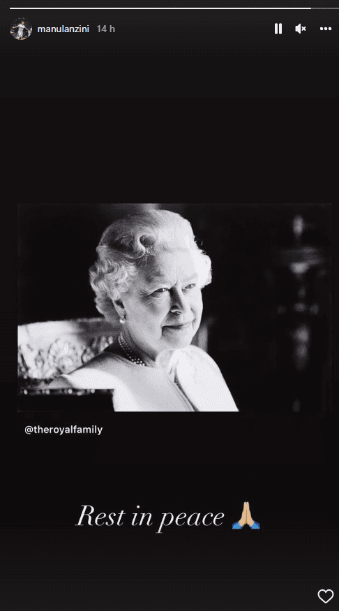 Manuel Lanzini, volante surgido en River y actual futbolista del West Ham, compartió una imagen de Isabel II a través de sus historias de Instagram y el mensaje fue conciso: “Rest in peace”. Mientras tanto, Cuti Romero, Alexis Mac Allister, Dibu Martínez, Alejandro Garnacho, Lisandro Martínez, Emiliano Buendía,Julián Álvarez y Marcos Senesi decidieron no expresarse al respecto, al menos en la mencionada red social.