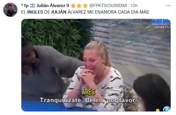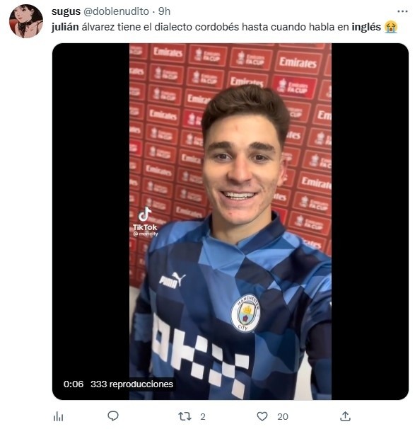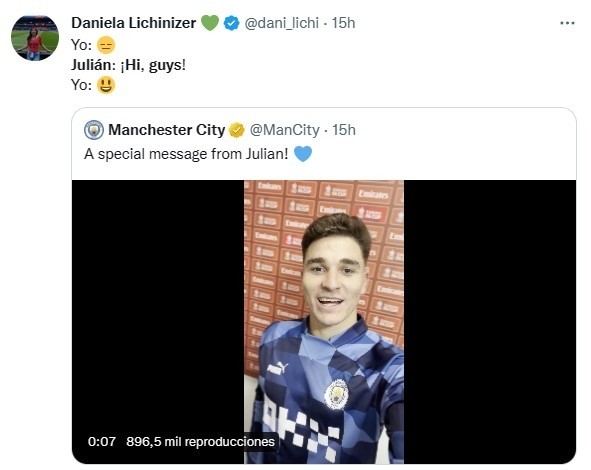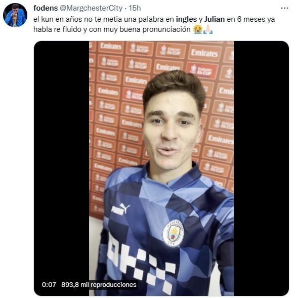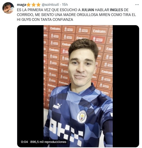 “¡Nuestra Arañaya se atreve con el inglés! ¡Grande, Juli!”, publicaron los Citizens vía Twitter. A partir de la difusión del video, cientos de hinchas de la Albiceleste en nuestro país lo compartieron entre risas, memes y gestos de cariño para el exatacante de River que, poco a poco, se va adaptando a la Premier League hasta lingüísticamente. Un crack absoluto.