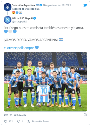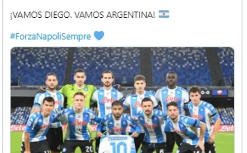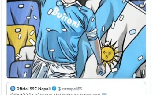 La cuenta oficial de Twitter en español del conjunto italiano no quiso dejar pasar este día tan especial para el país donde nació su gran ídolo, Diego Armando Maradona. A casi siete meses de su paso a la inmortalidad, el club azul le dedicó un saludo a la Argentina.
