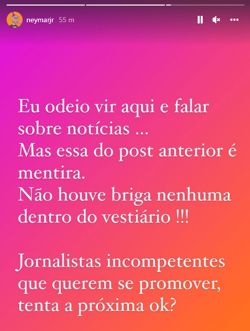 El “10” se mostró enfurecido en sus redes sociales por la “noticia” y escribió en sus historias: “Odio venir aquí y hablar de noticias… Pero esto de la publicación anterior es mentira. ¡No hubo pelea dentro del vestuario! Periodistas incompetentes que quieren promocionarse, prueben con otra cosa, ¿de acuerdo?”. Explosivo.