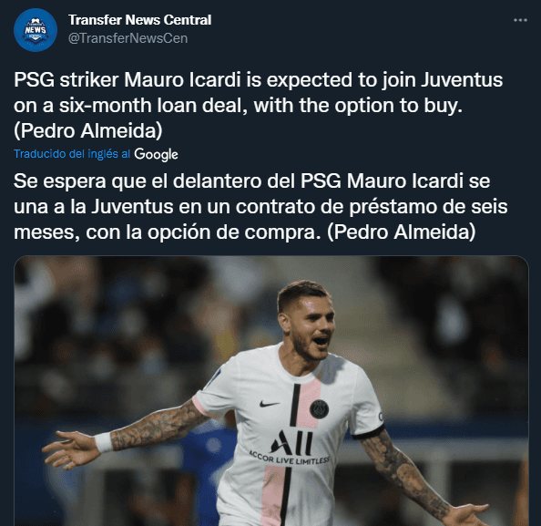 Esto lo informó el medio digital “Transfer News Central“, en el cual escribieron en Twitter que a los dirigidos por Massimiliano Allegri les interesaría la ficha de Icardi para una cesión de seis meses con una opción de compra al precio que el equipo parisino le parezca acorde.