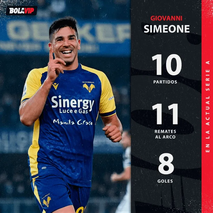 Sus números en el torneo son dignos de cualquier crack mundial. En 10partidos jugados, Simeone registra 8goles y 2asistencias en la Serie A. Además, anotó 6tantos en sus últimos 3encuentros y solo Ciro Immobile hizo más goles que él en el campeonato. Una locura.