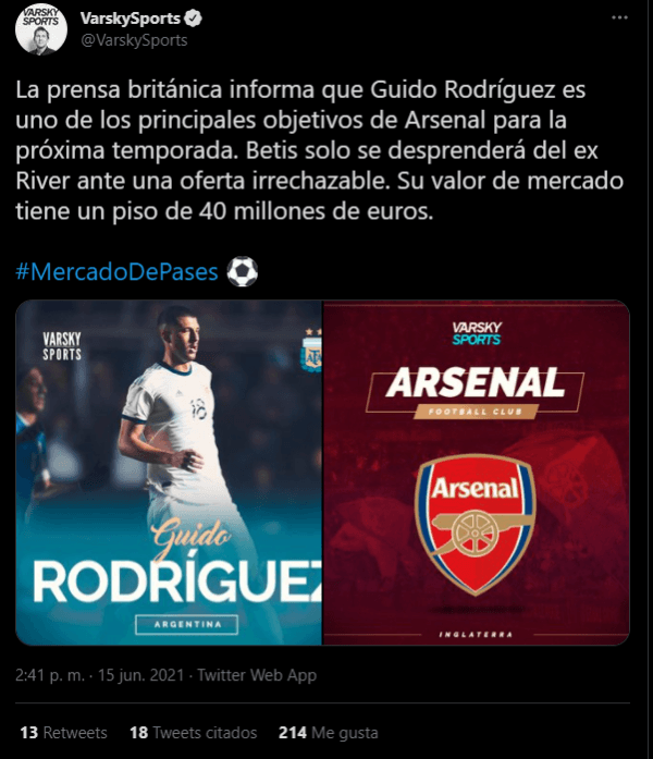 Ante este buen contexto propio en un equipo que estuvo a la altura de las expectativas, un gigante de Inglaterra con mucha más billetera que el Betis se presenta como una variante en el futuro de Guido Rodríguez: Arsenal. Los Gunners quedaron afuera de todo para la próxima temporada al haber quedado octavo en la Premier League y por eso querrán apostar a armar un equipo competitivo para volver a las competencias internacionales.