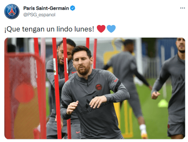 En la jornada de hoy, el conjunto parisino compartió imágenes exclusivas del entrenamiento previo al choque contra el Manchester City por la segunda jornada del Grupo A. Lionel Messi volvió a hacer trabajos a la par del grupo y el club francés lo comunicó con una foto de la estrella de la Selección Argentina.
