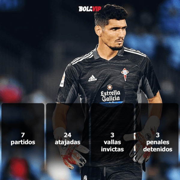 El arquero del Celta de Vigo de Eduardo Coudet acumuló 3 vallas invictas y detuvo 3 de los 4 penales que le ejecutaron. Para tomar dimensión, ningún arquero de las 5 grandes ligas de Europa atajó tantos remates vía penal en esta temporada. ¿El único que pudo vencerlo? Karim Benzemá, la estrella del Real Madrid.