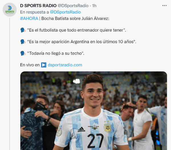 A pesar de que Batista es consciente de que hay futbolistas de la talla de Lautaro Martínez, que también sacudieron al fútbol mundial, la carrera de Álvarez “no llegó a su techo”. Y sí, no es el único que está enamorado y encandilado con el juego que muestra la Araña en la Premier League, y como lo conoce muchísimo, sabe que le irá muy bien en Inglaterra, como así también en el Mundial de Qatar.