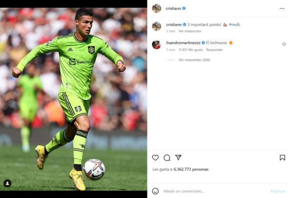 No es sencillo llegar a Inglaterra siendo extranjero por varios factores como el idioma y el estilo de su fútbol. Sin embargo, quedó claro que Licha logró encajar en el grupo de los Diablos Rojos y con el mismísimo CR7. Tal es así que uno de los comentarios que le dejó en Instagram hizo ruido.